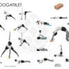Lehtisessä esitellään esimerkkejä kuvin jooga-asennoista apuvälineiden kanssa.
